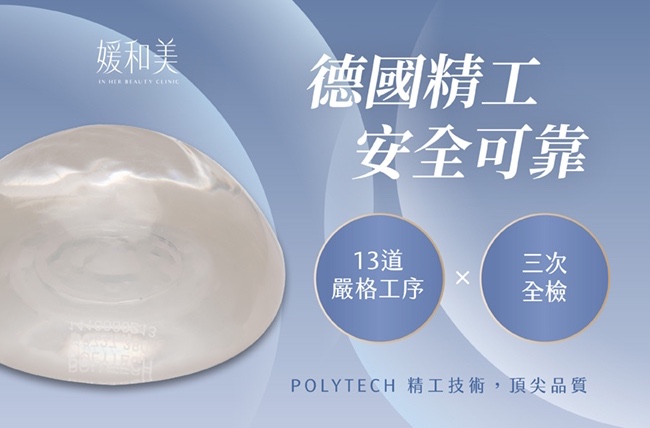 波麗果凍POLYsmoooth™採用德國POLYTECH精工製造技術,每顆乳房植入物都經歷13道嚴格生產工序,並通過三次100%品質檢驗,確保每顆植體都達到頂尖標準。
