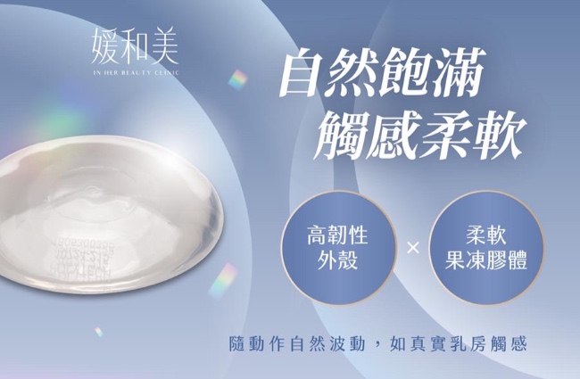波麗果凍POLYsmoooth™採用「高韌性外殼」與「柔軟果凍膠體」,即使接近完全填充,仍能保持觸感柔軟與隨著動作自然波動,呈現如真實乳房般的視覺與觸感。 -